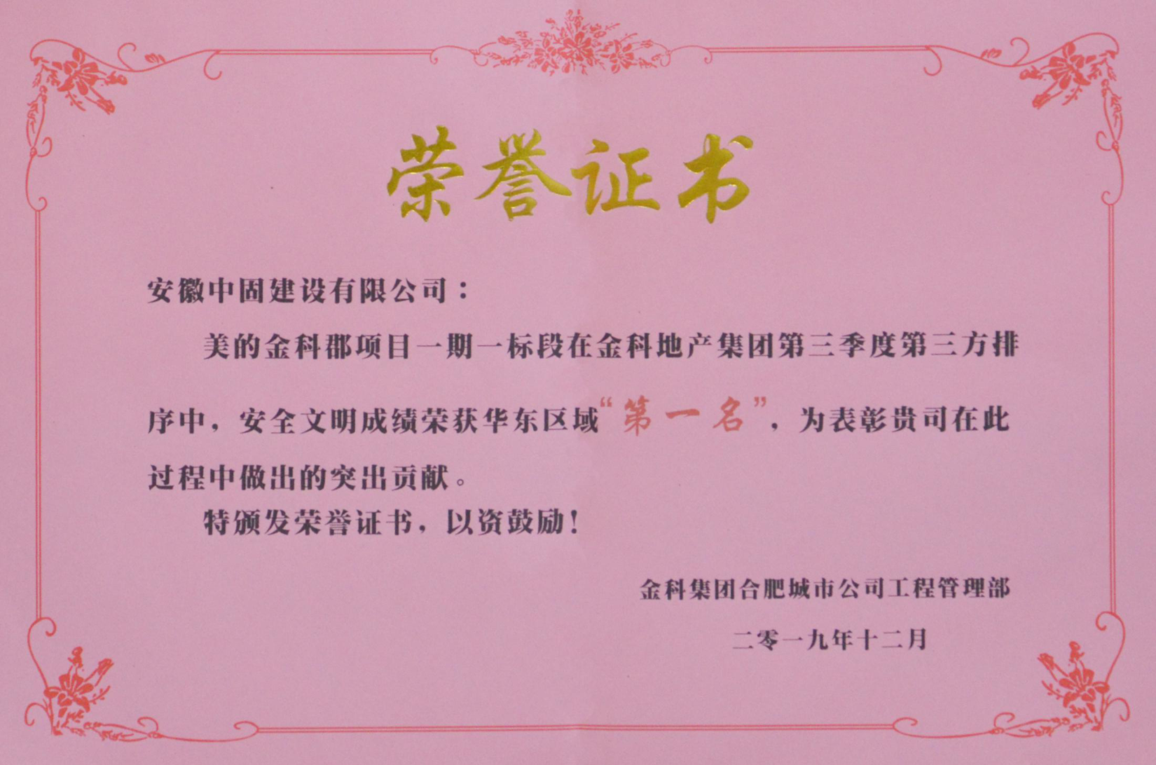 美的金科郡第三季度第三方排序 安全文明 華東區(qū)域 第一名