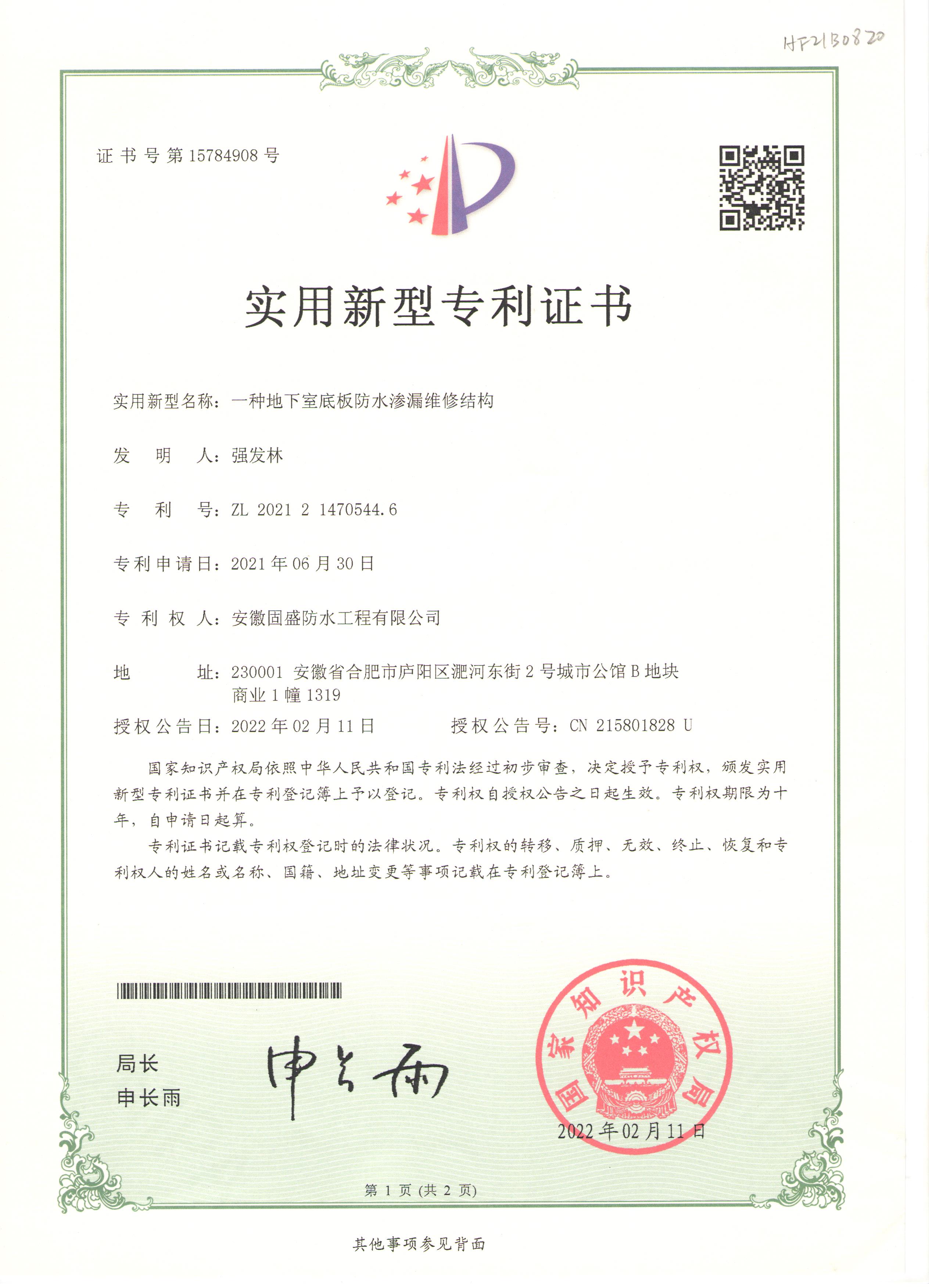 下一篇:實用新型專利證書