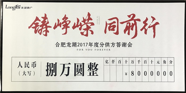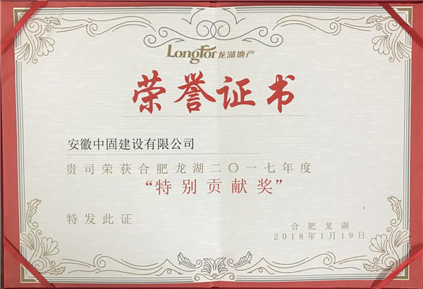 新年新氣象。在1月19日合肥龍湖2017年度分供方答謝會(huì)上,安徽中固建設(shè)有限公司榮獲2017年度特別貢獻(xiàn)獎(jiǎng),并獲得了8萬(wàn)元獎(jiǎng)金,公司總經(jīng)理陶征強(qiáng)出席答謝會(huì)并接受頒獎(jiǎng)。