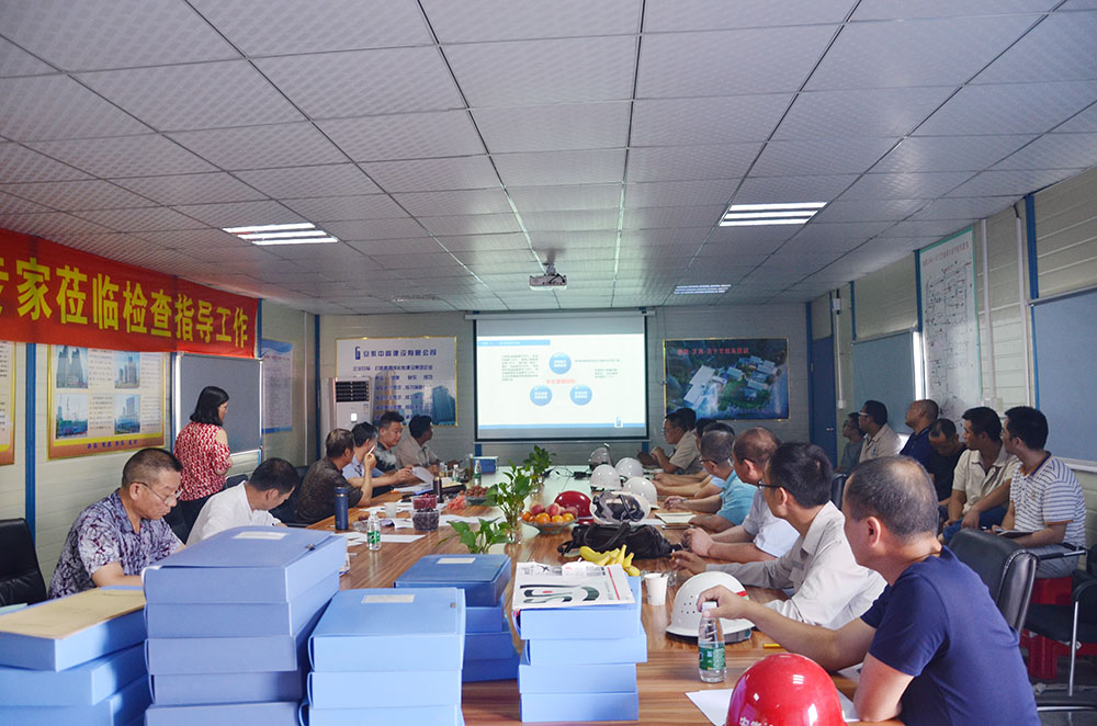 圖為市建筑協(xié)會(huì)領(lǐng)導(dǎo)和專家組聽取施工單位情況匯報(bào)