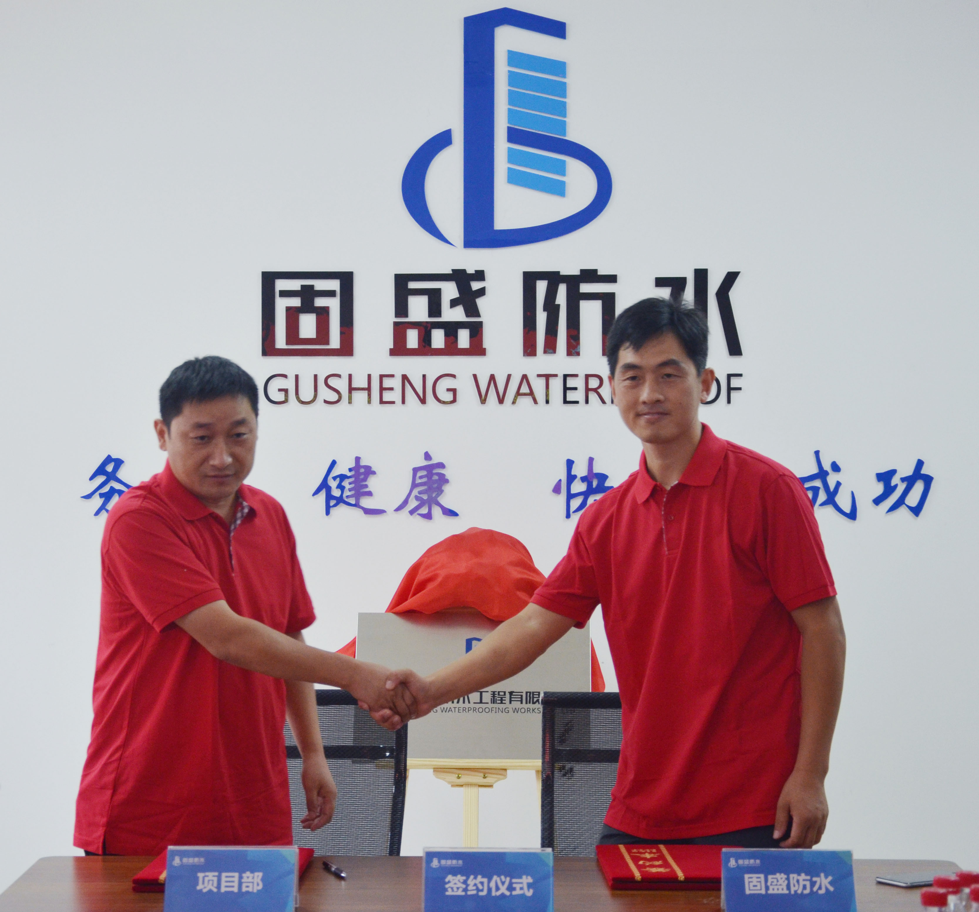開業(yè)當天,固盛防水工程公司就喜獲大單。安徽中固建設(shè)有限公司常務(wù)副總經(jīng)理徐華龍代表中固建設(shè)與固盛防水簽訂了戰(zhàn)略合作協(xié)議。安徽中固建設(shè)有限公司所屬的旭輝陶沖湖三期商業(yè)項目、萬科紅郡項目、旭輝麓湖府項目、華地森林語項目等,分別與固盛防水公司簽訂了生產(chǎn)合同。